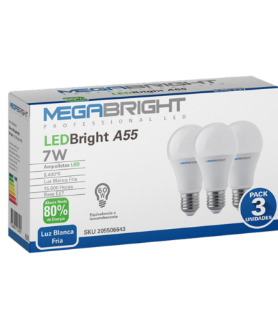 AO Megabright Pack Ampolletas LED A55 7W/6400k